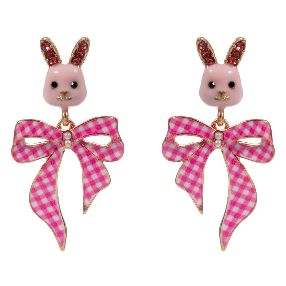 Easter Bunny Gingham Bow Drop Dangle Earrings Easter Bunny Gingham Bow Drop Dangle Earrings