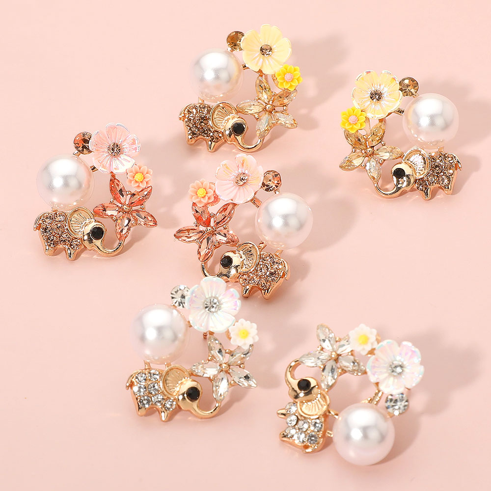 • Whimsical stud earrings featuring adorable elephant charms adorned with crystals, delicate floral details, and luminous pearl accents. A charming accessory that blends playful design with elegant sparkle, perfect for adding personality to casual or dressy looks.