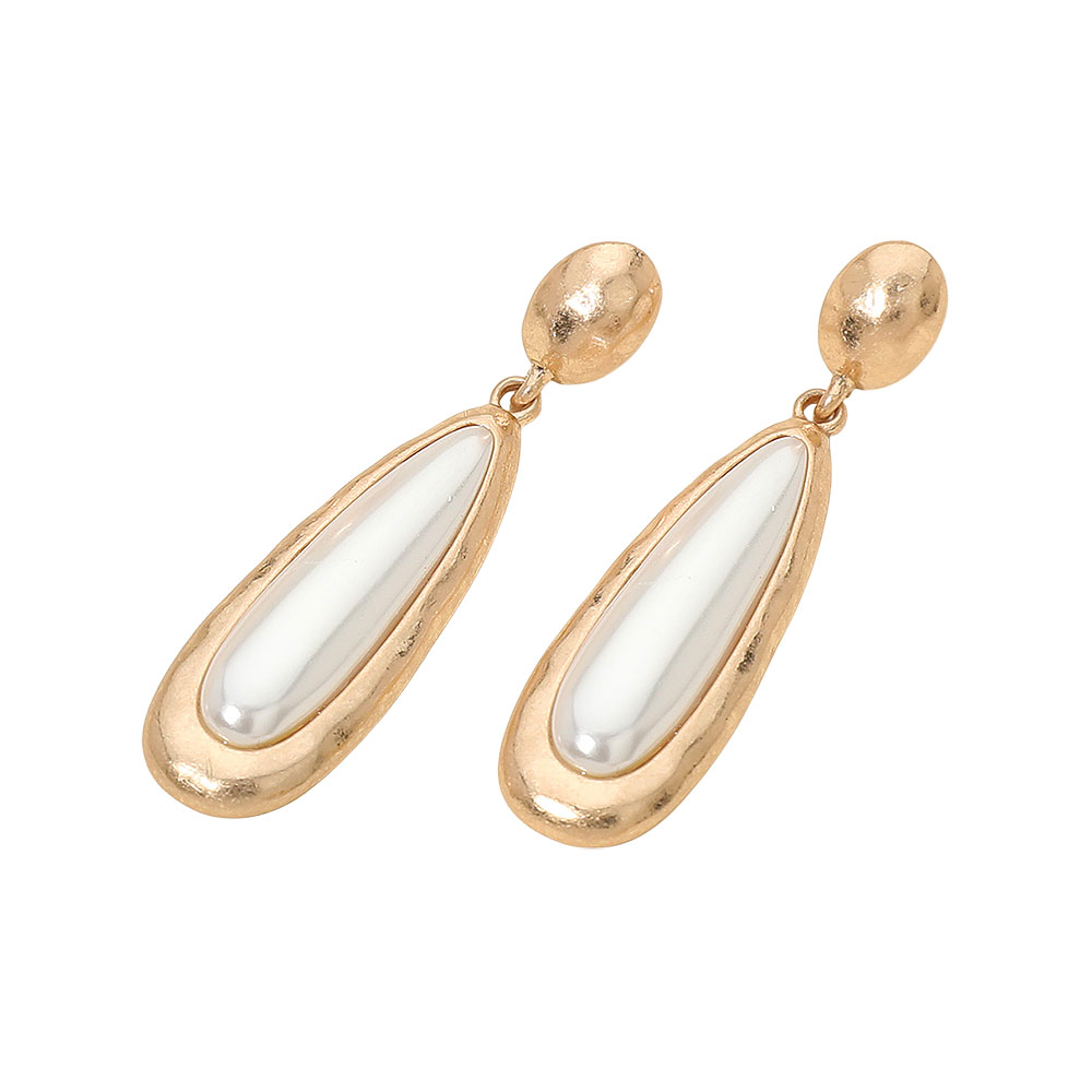 • These elongated teardrop statement earrings feature a sleek, polished centerpiece framed by a textured metallic design. Lightweight yet bold, they add modern sophistication to both casual and dressy looks, making them a versatile accessory for everyday wear or special events.