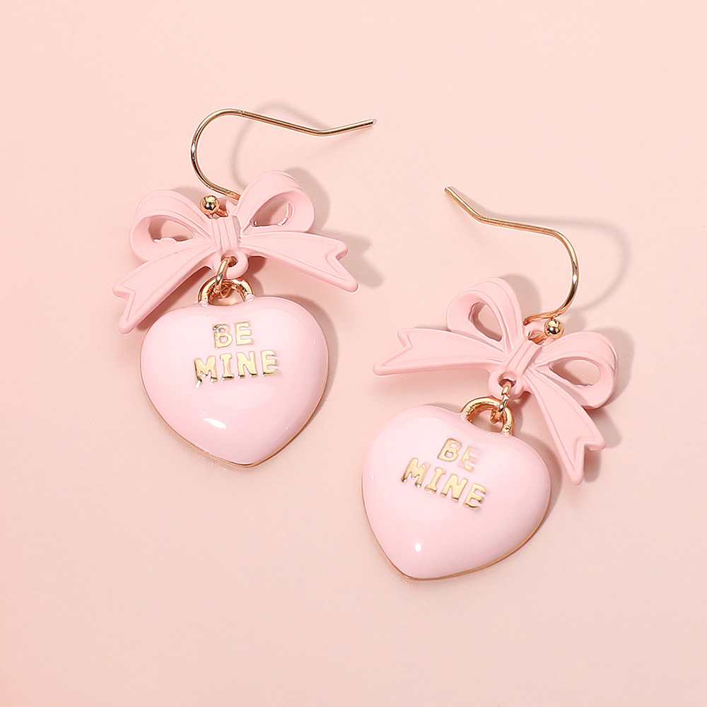 Enamel BE MINE Heart Drop Bow Link Dangle Earrings