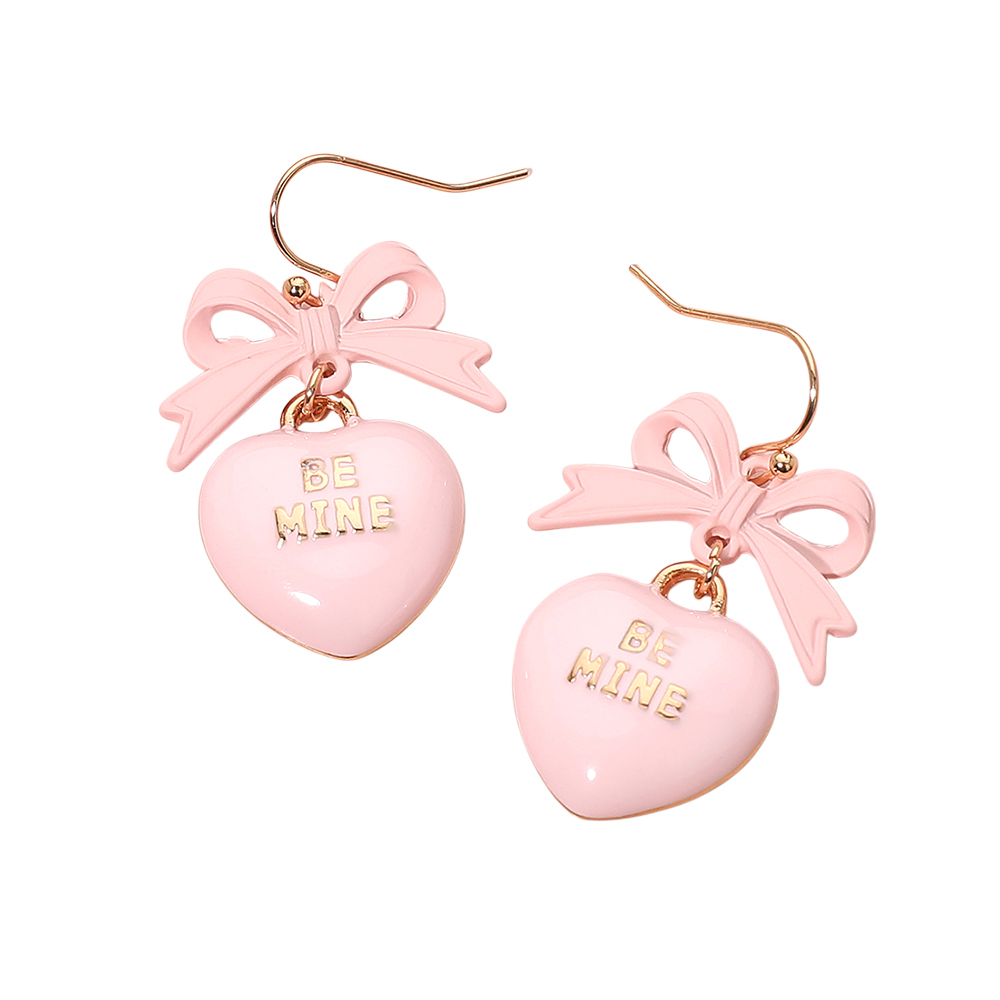 • Adorable heart drop earrings featuring a sweet bow accent and “BE MINE” charm. Lightweight dangling design adds a playful, romantic touch to any outfit. Perfect for gifting, everyday styling, or completing a charming accessory collection.