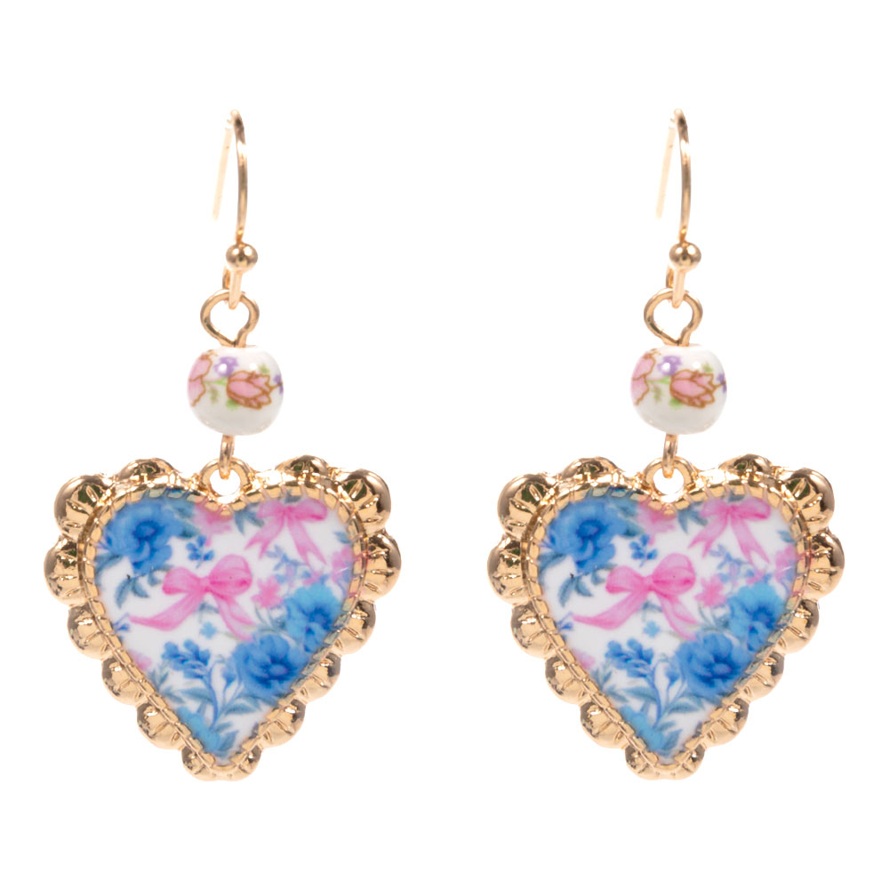 Details • Size : 0.8" X 1.5" • Brass Fish Hook Back • Charming heart drop earrings featuring a delicate floral motif and graceful dangling design. A timeless accessory ideal for boutiques, gifting, bridal events, and everyday wear, offering elegant movement and a romantic touch that pairs beautifully with dresses, blouses, and special occasion outfits. • Hypoallergenic • Lead and Nickel Compliant