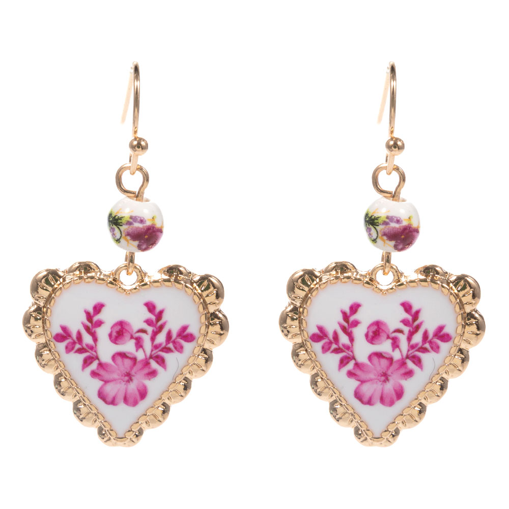 Enamel Floral Heart Frame Charm Drop Dangle Earrings