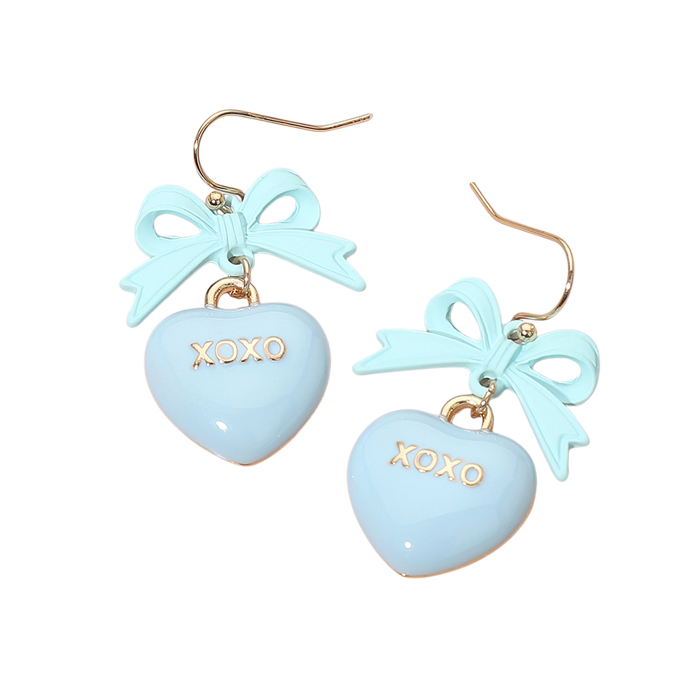 • Adorable heart drop earrings featuring a sweet bow accent and “XOXO” charm. Lightweight dangling design adds a playful, romantic touch to any outfit. Perfect for gifting, everyday styling, or completing a charming accessory collection.
