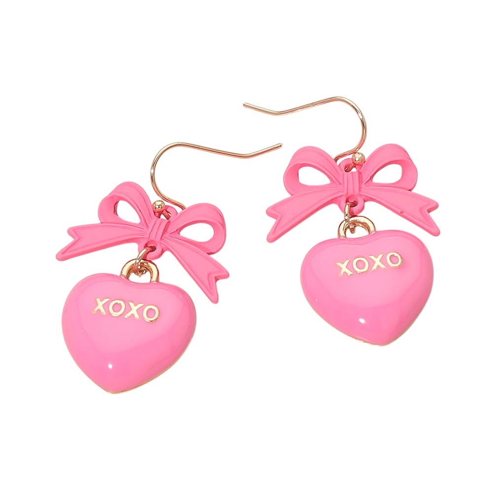 • Adorable heart drop earrings featuring a sweet bow accent and “XOXO” charm. Lightweight dangling design adds a playful, romantic touch to any outfit. Perfect for gifting, everyday styling, or completing a charming accessory collection.