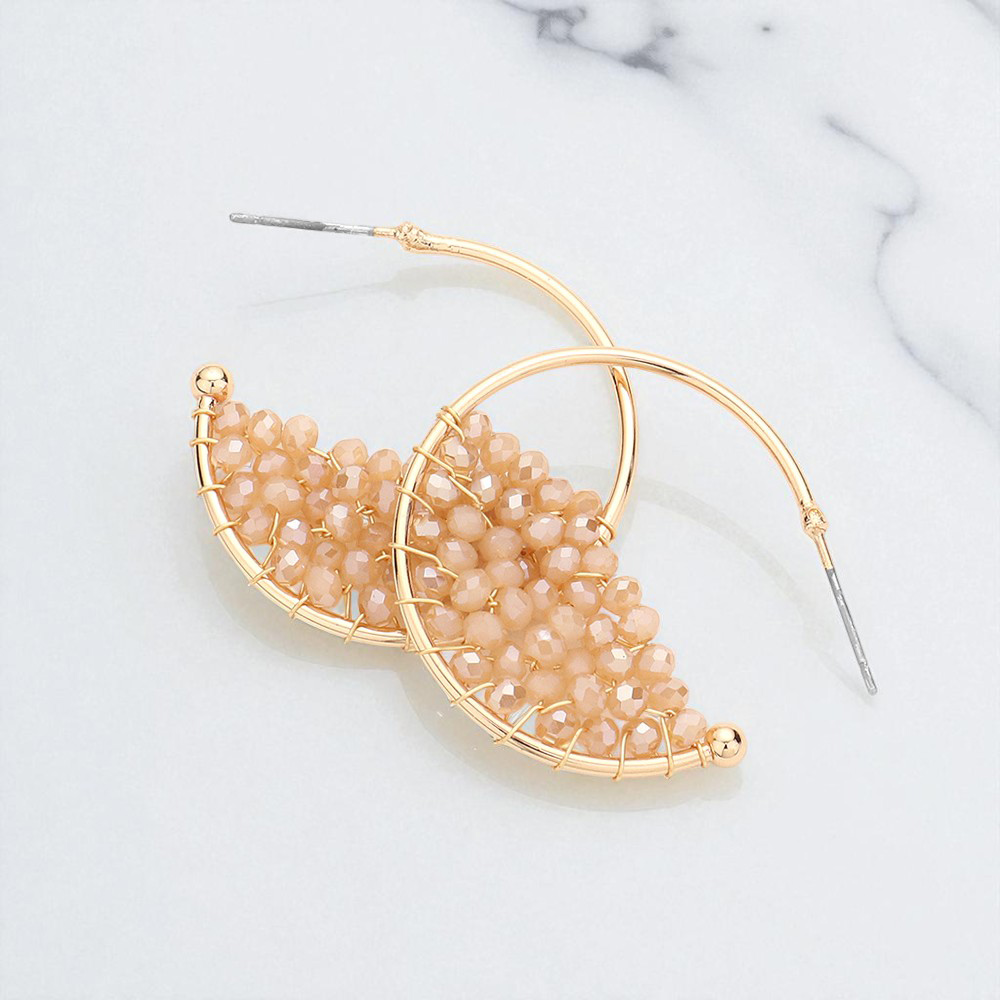 Polished Metal Bean Accent Bold Marbled Ball Beaded Statement Necklace