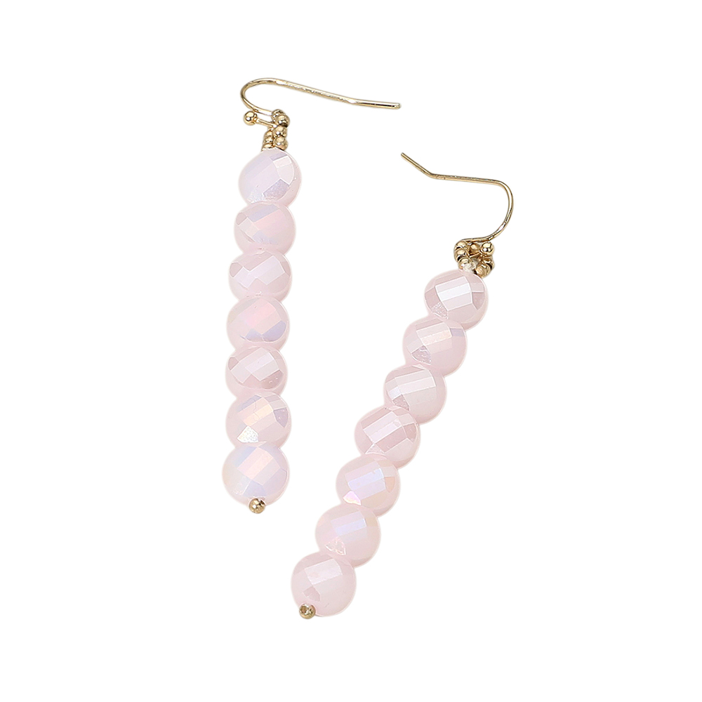 Details • Size : 0.3" X 2.75" • Fish Hook Back • These faceted beaded drop earrings shimmer beautifully with every movement, offering a chic balance of elegance and simplicity. Lightweight and versatile, they are the perfect accessory to complement both casual outfits and evening looks with timeless sophistication. • Lead and Nickel Compliant