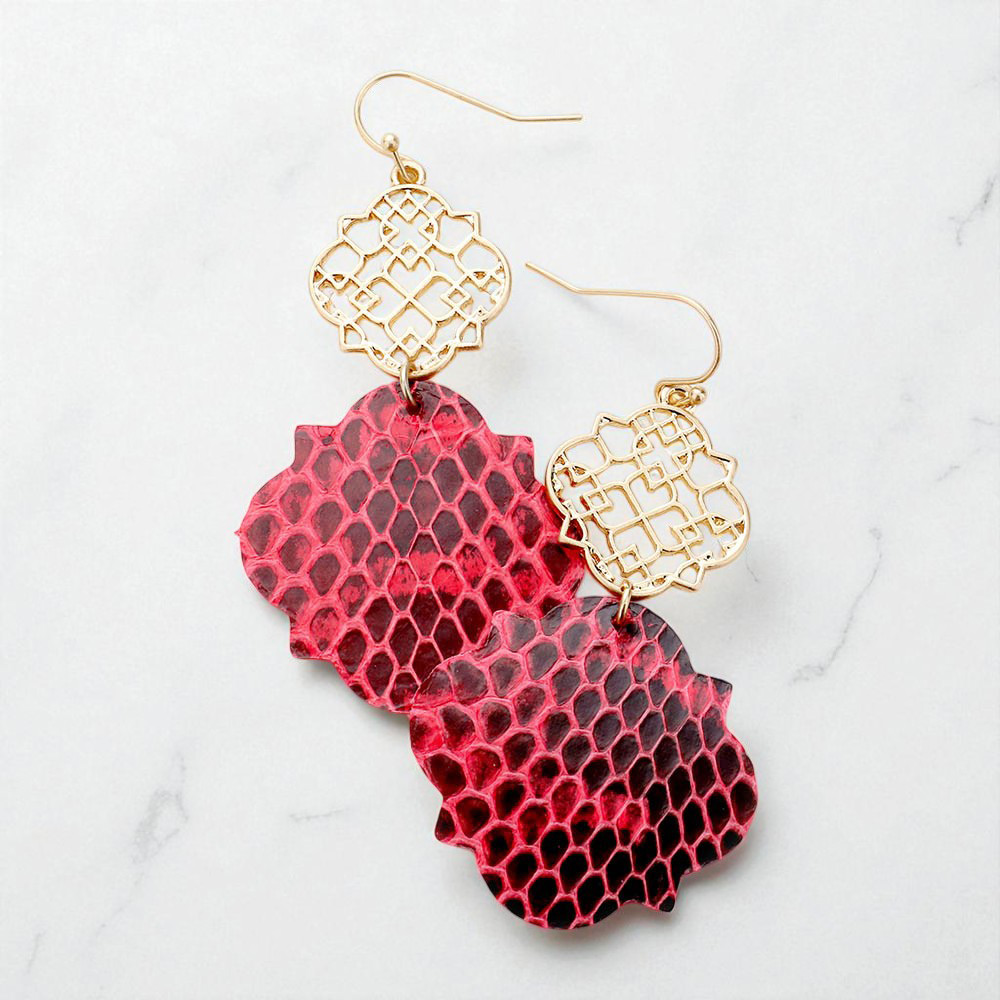 Faux Leather Moroccan Filigree Dangle Earrings
