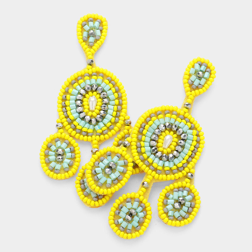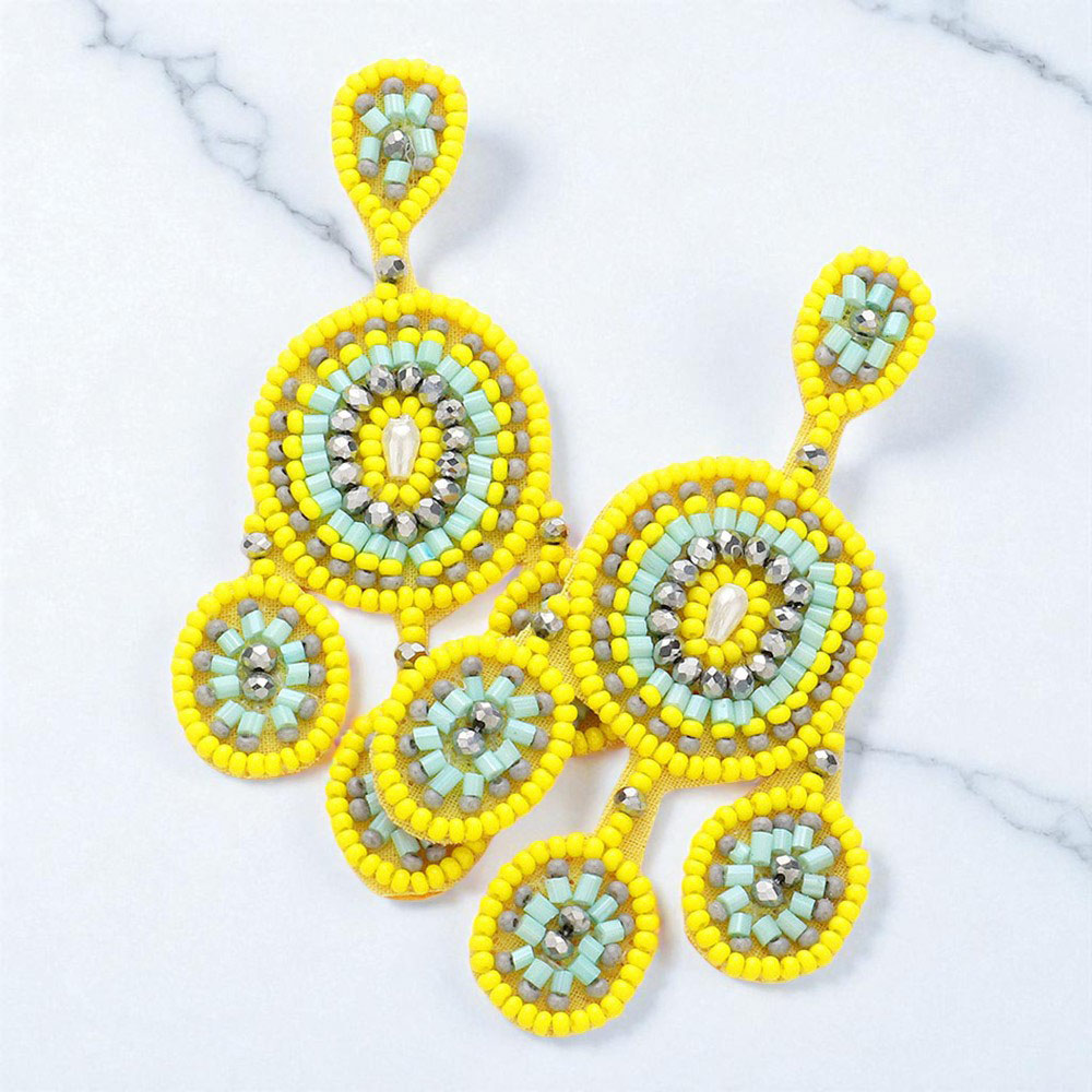 Felt Back Beaded Geometric Oval Detail Dangle Earrings