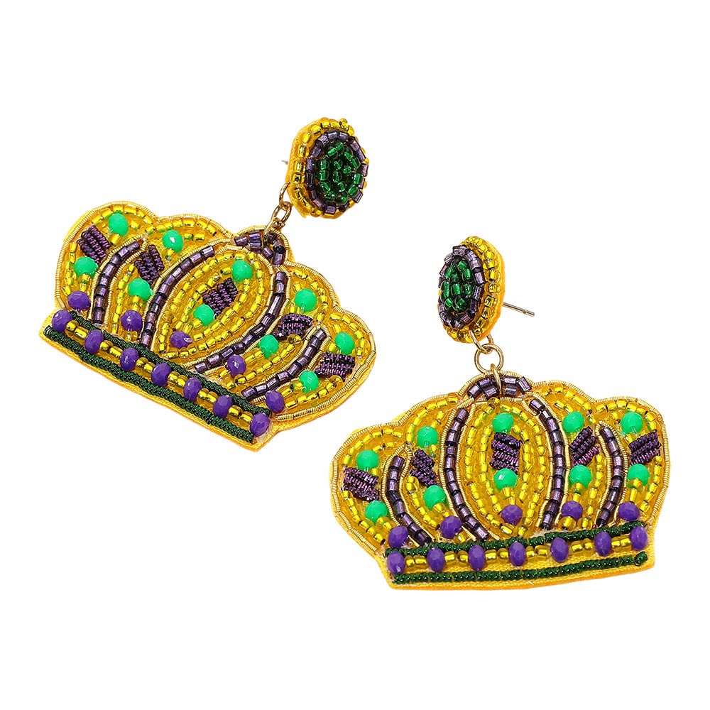 Details • Size : 2" X 2.25" • Post Back • Bold statement drop earrings shaped like ornate crowns, designed to deliver dramatic flair with eye-catching texture and standout movement. Perfect for Mardi Gras, parties, themed events, stage outfits, or any look that calls for unforgettable style. • Lead and Nickel Compliant • Made In India