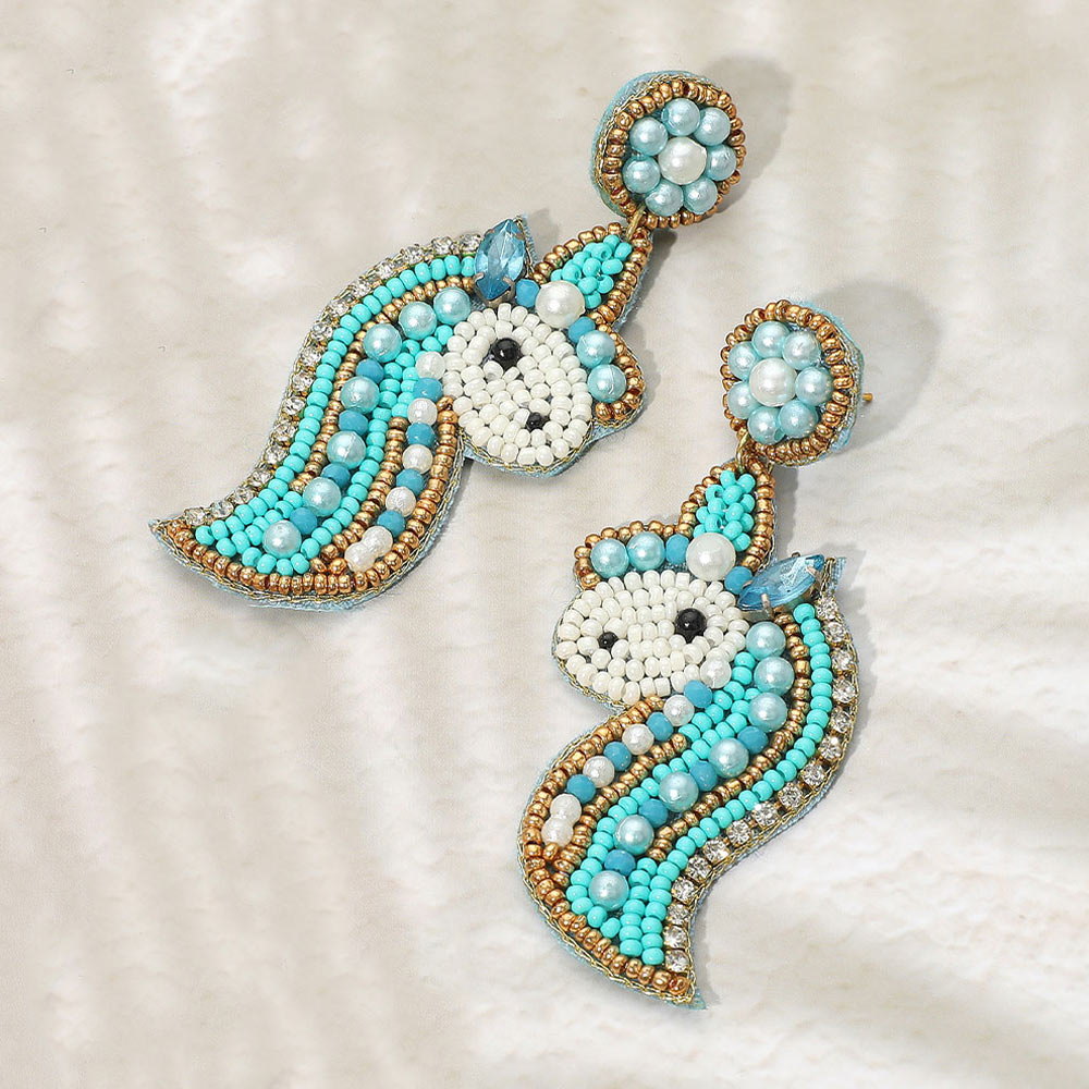 • Playful unicorn earrings featuring intricate beadwork, pearls, and sparkling accents in a whimsical design. Lightweight and bold, these statement earrings bring fun, color, and charm to festivals, parties, or casual looks.