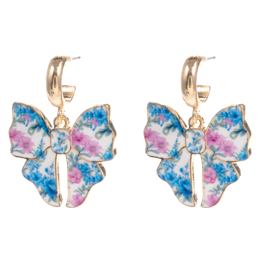 Details • Size : 1" X 1.3" • Titanium Post Back • Charming bow-shaped drop earrings with a delicate floral motif designed to elevate everyday and occasion looks. A graceful statement accessory perfect for boutiques, gift collections, weddings, brunch outfits, vacations, and trend-forward styling. Lightweight and eye-catching with a playful yet elegant appeal for fashion-focused customers. • Hypoallergenic • Lead and Nickel Compliant