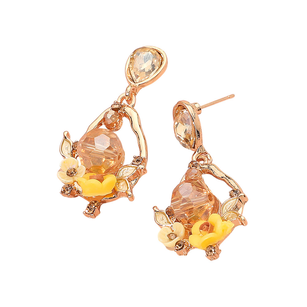Floral Faceted Gem Embellished Teardrop Dangle Earrings