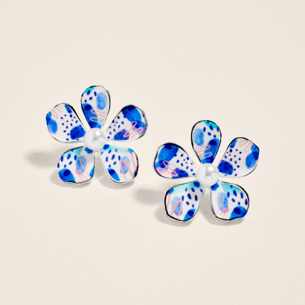 • These floral petal stud earrings feature a delicate patterned design with a soft center accent, offering a charming and feminine look. Lightweight and easy to wear, they are ideal for everyday outfits, gifting, spring styling, and adding a playful yet elegant touch to boutique jewelry collections.
