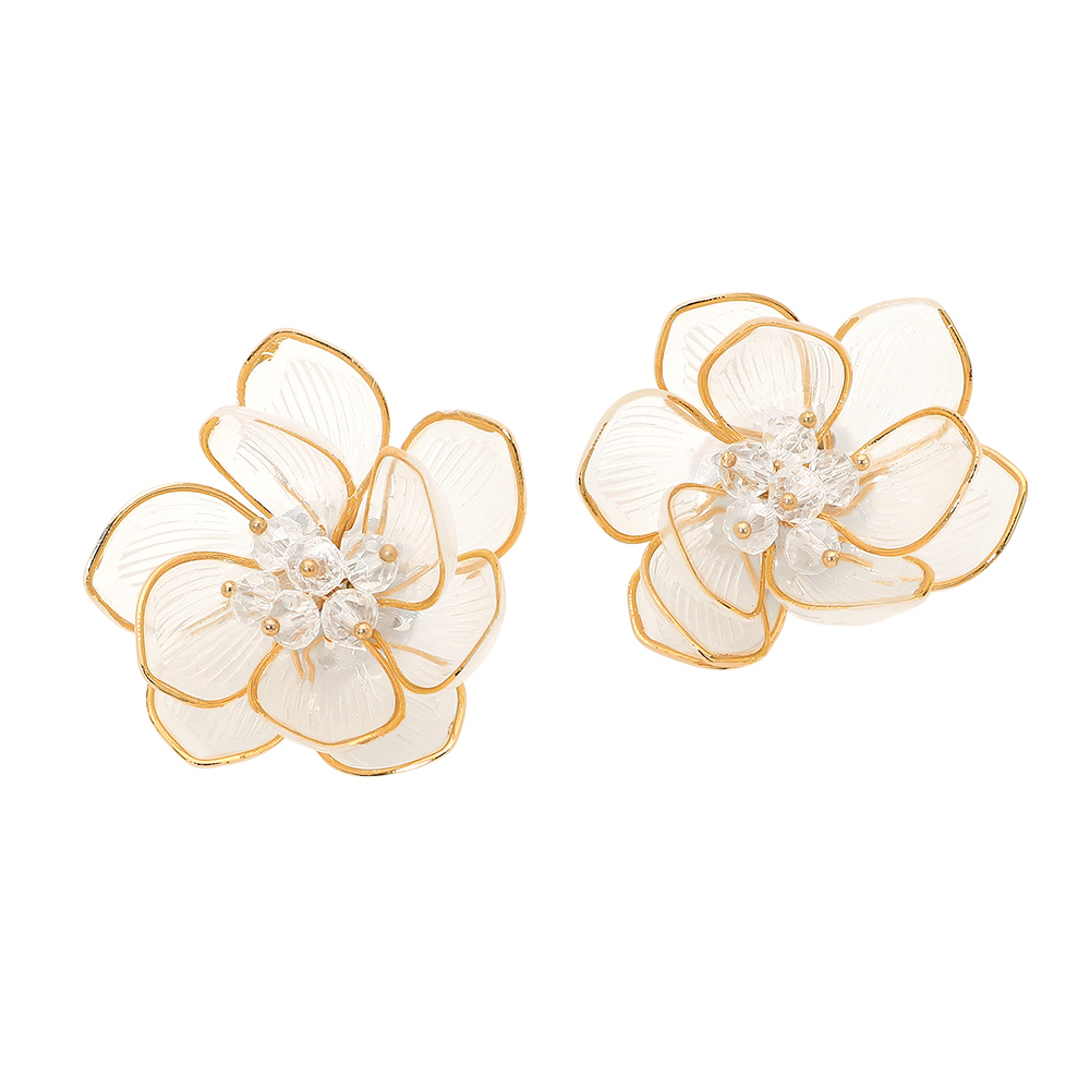 • These floral statement stud earrings feature a layered flower design that adds a refined, eye-catching touch to any look. Perfect for weddings, parties, and everyday wear, they offer a balanced blend of elegance and charm while elevating outfits with a timeless, feminine accent.