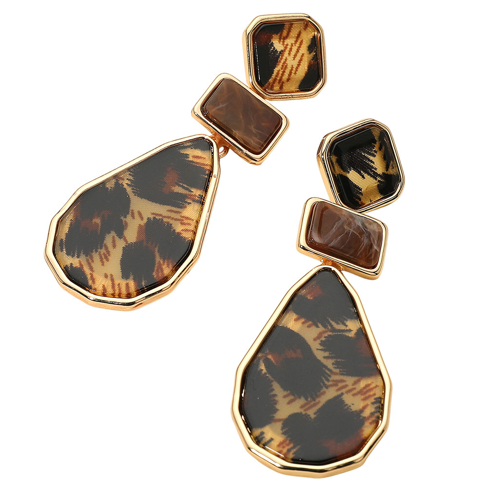 Details • Size : 1.1" X 2.9" • Post Back • Bold geometric drop earrings featuring layered shapes with glossy accents. These statement earrings combine modern artistry with timeless elegance, perfect for parties, evening wear, or elevating everyday outfits. Lightweight and stylish, they add a contemporary touch to any look. • Lead and Nickel Compliant
