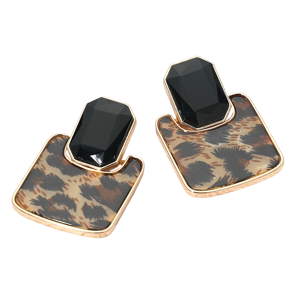 • Stand out with these geometric gemstone stud earrings featuring a striking print accent on resin plate. The bold contrast between faceted stones and patterned detail creates a chic, fashion-forward look—perfect for adding a statement touch to both casual and elegant outfits.