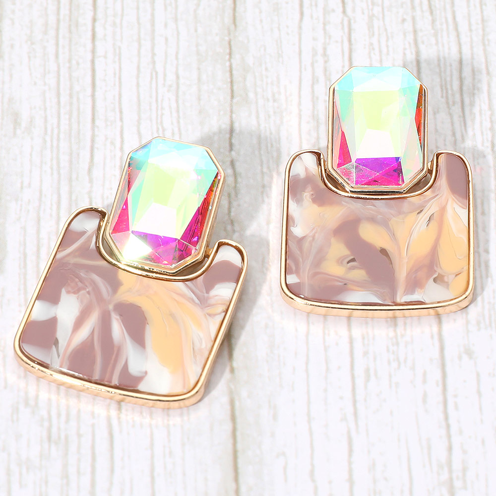 Geometric Stone Accent Printed Resin Plate Drop Earrings