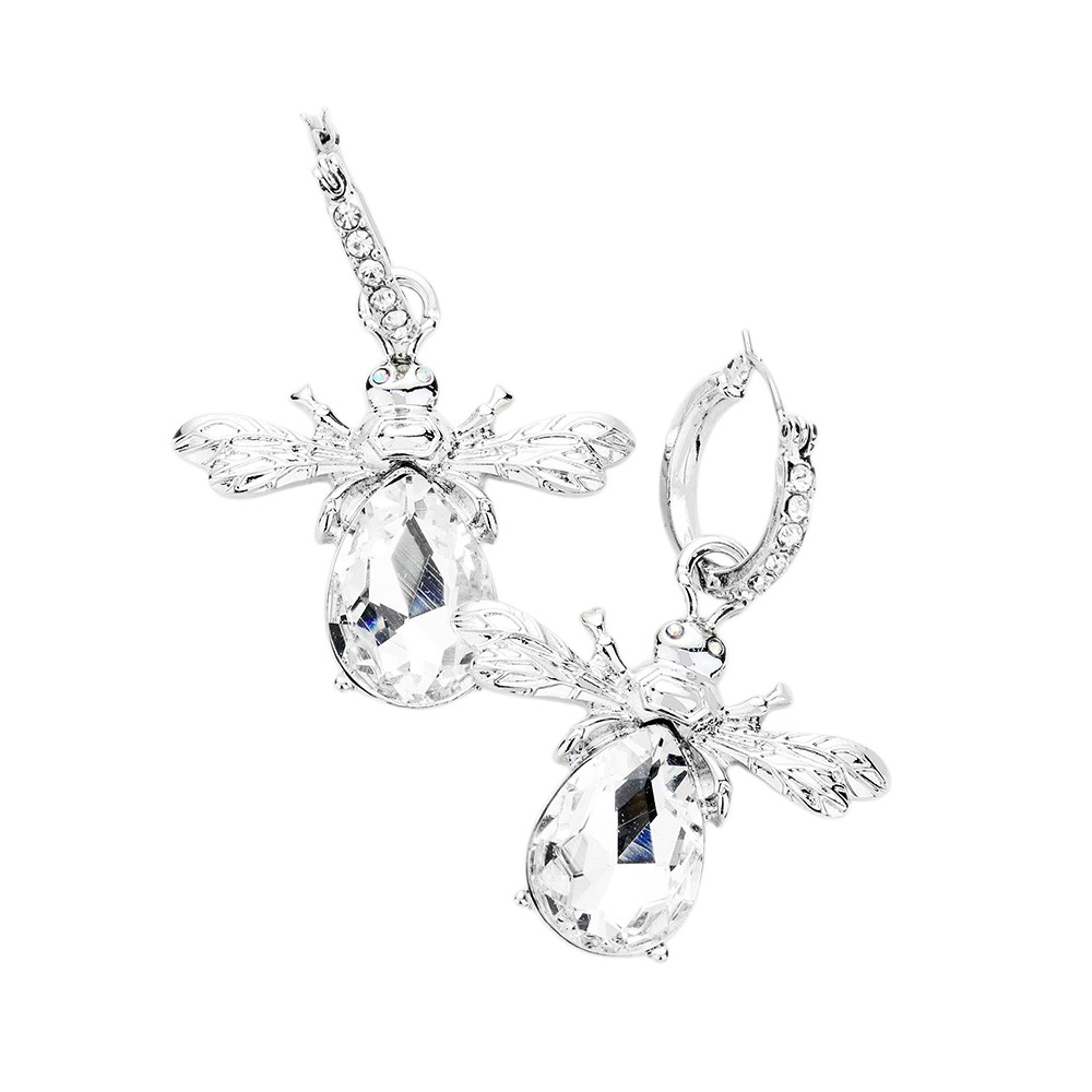 Rhinestone Embellished Brass Metal Butterfly Accented Safety Pin Pendant Necklace
