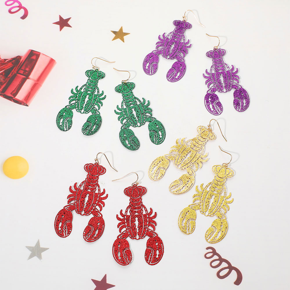 Glitter Cutout Mardi Gras Lobster Charm Drop Earrings