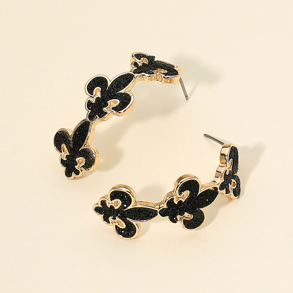 Glitter Mardi Gras Fleur de Lis Link Hoop Earrings