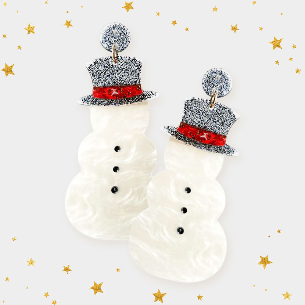 Glittered Resin Snowman Dangle Earrings