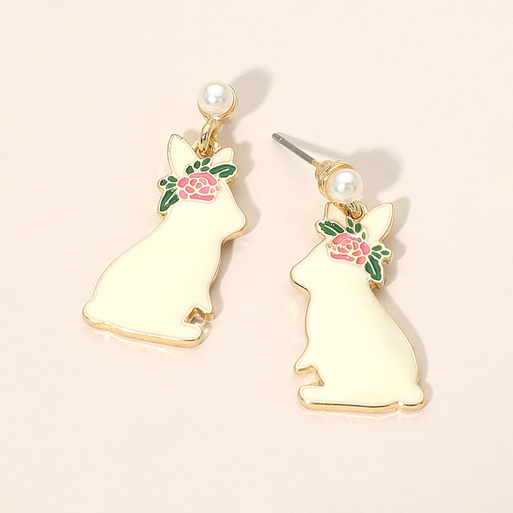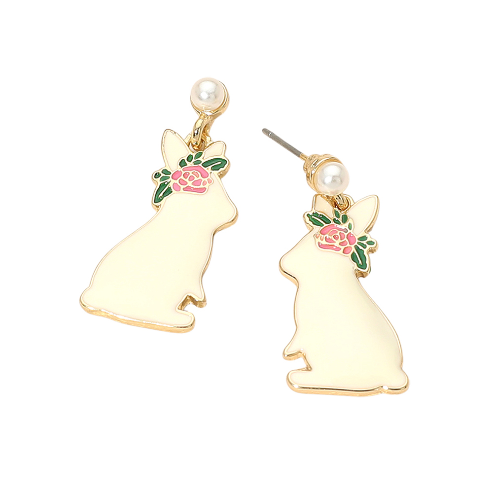 Details • Size : 0.6" X 1.2" • Post Back • Charming bunny drop earrings designed with a delicate floral accent and pearl-style stud top for a playful yet polished look. Lightweight and easy to wear, these earrings are perfect for spring displays, Easter themes, gift shops, and novelty jewelry collections. A fun statement piece that adds character and seasonal appeal while remaining versatile for everyday styling. • Gold Dipped • Hypoallergenic • Lead and Nickel Compliant