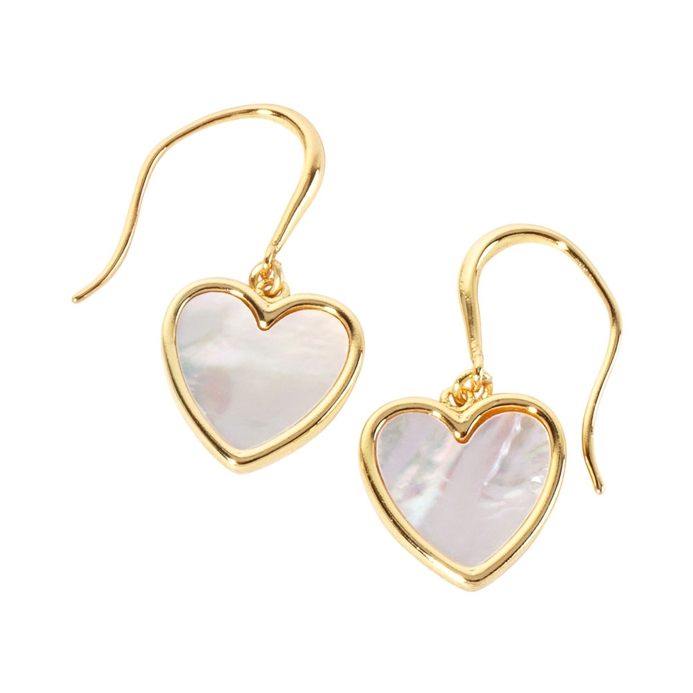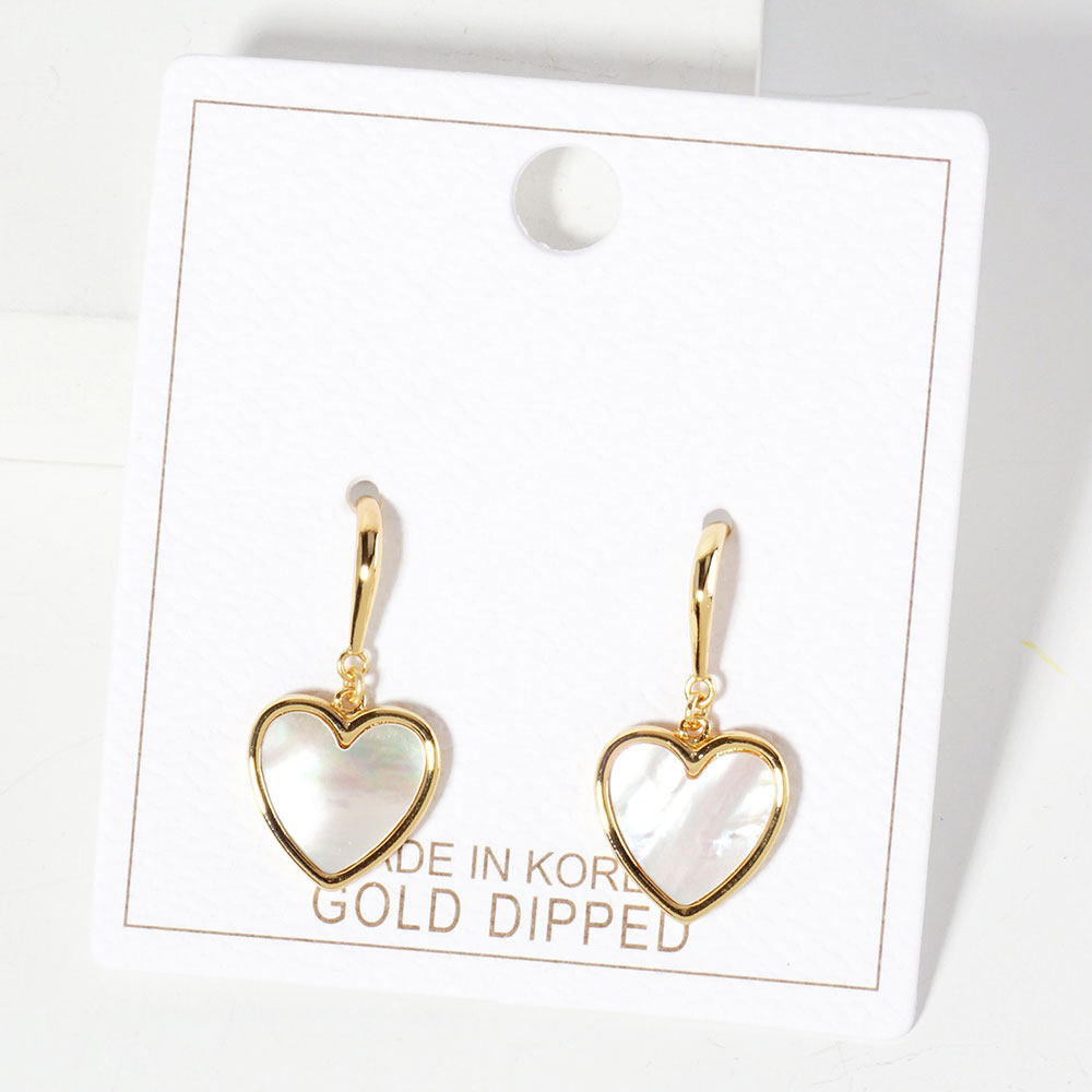 • Elegant heart dangle earrings featuring a smooth heart-shaped drop with a mother of pearl style finish. Lightweight hook design adds effortless charm for daily wear, special occasions, or gifting. A timeless accessory with a soft, romantic touch.