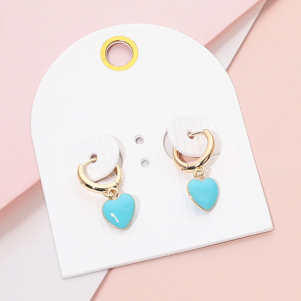 Details • Size : 0.5" X 0.8" • Huggie Back • Petite huggie earrings featuring a dangling heart charm for a soft, romantic touch. Lightweight and easy to wear, they add subtle movement and shine to everyday outfits while transitioning effortlessly to evening looks for a delicate yet eye-catching finishing detail. • Lead and Nickel Compliant