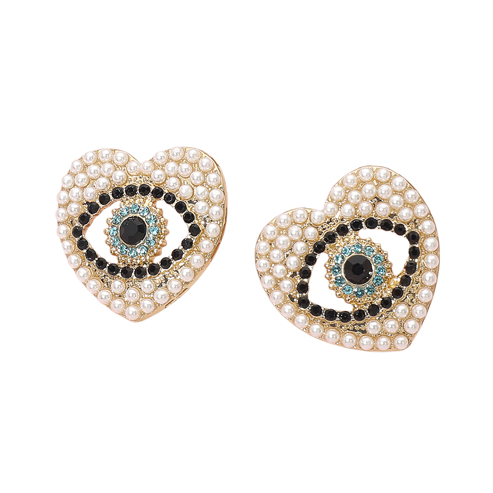 • Eye-catching heart-shaped stud earrings featuring a bold evil eye design with layered detailing that adds instant personality to any look. Perfect for boutiques seeking statement accessories that blend symbolism with trend-forward style, ideal for gifting, festivals, and everyday standout wear.