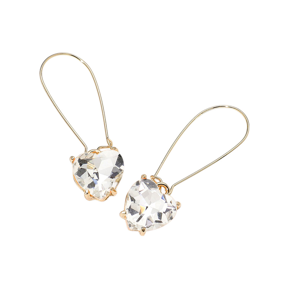 • Charming drop earrings featuring heart-cut stones suspended from delicate elongated hooks. The minimalist wire design complements the faceted heart shape, adding a touch of romance and elegance to any outfit.