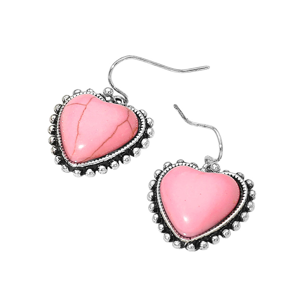 Heart Stone Cluster Dangle Earrings
