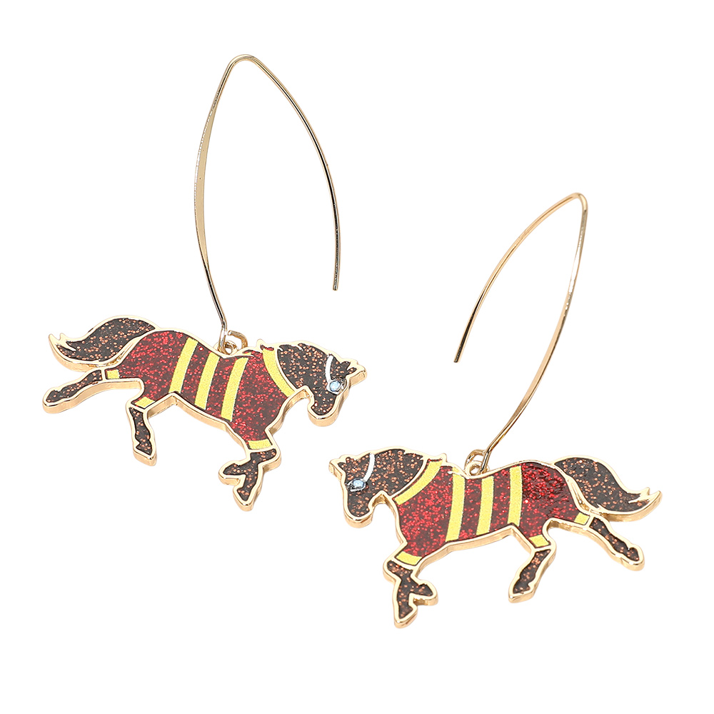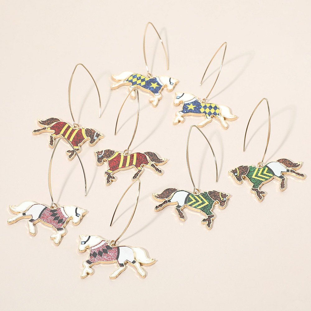 • Whimsical horse hook drop earrings featuring a playful silhouette design that brings movement and personality to any jewelry display. Lightweight and easy to wear, these novelty earrings are perfect for gift shops, western-inspired assortments, seasonal promotions, and fun fashion collections. A charming statement piece that adds character and visual interest to everyday styling and themed displays.