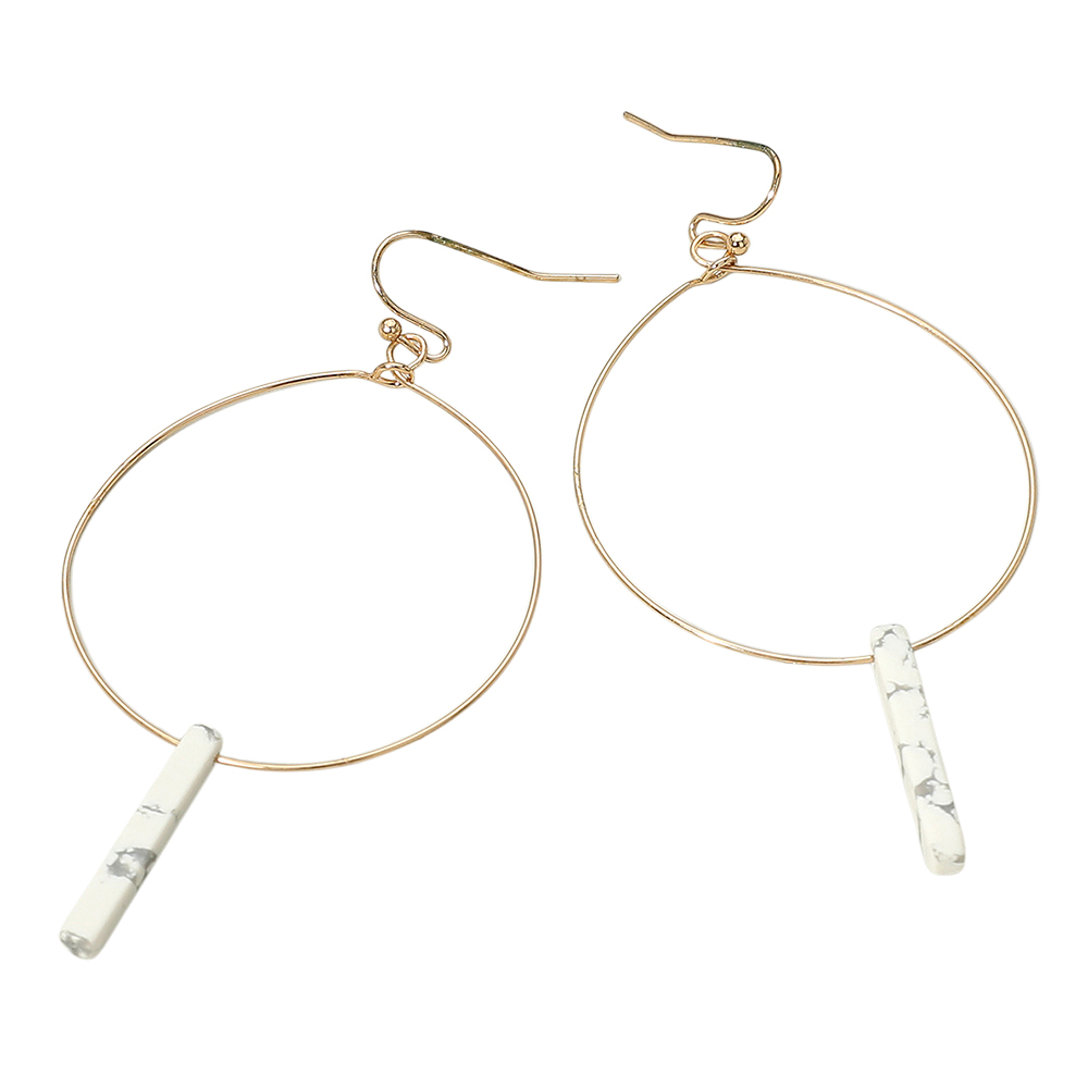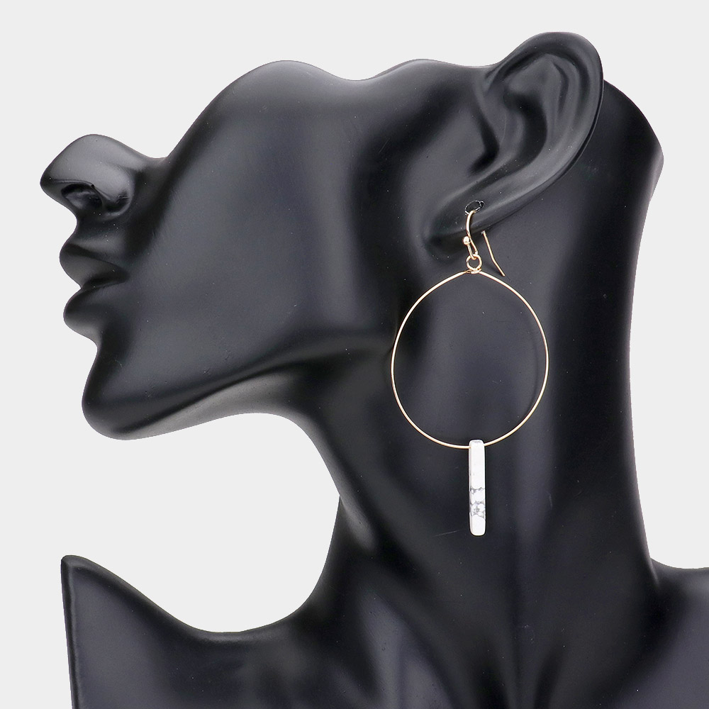 Details • Size : 1.5" X 2.75" • Post Back • These elegant hoop earrings feature a sleek bar charm that adds a touch of modern sophistication. Lightweight and versatile, they complement both casual and dressy outfits, making them a timeless accessory for everyday wear or special occasions with effortless style. • Lead and Nickel Compliant