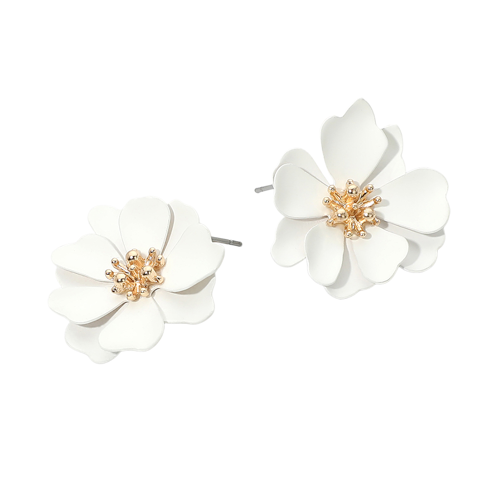 • Charming layered petal flower stud earrings designed with sculpted petal details and a dimensional floral silhouette. A versatile accessory for everyday styling, seasonal collections, boutiques, and gift-ready assortments, offering feminine appeal with a lightweight, easy-to-wear design.