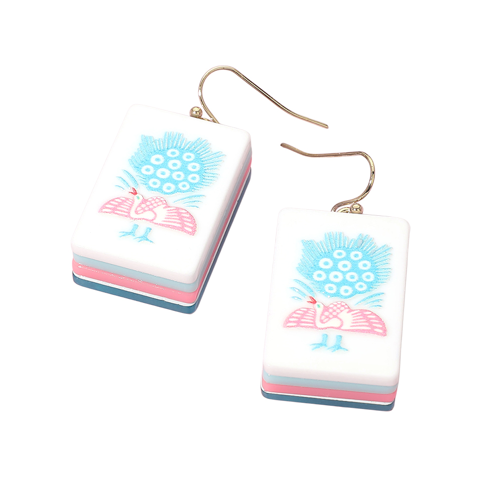 • Statement drop earrings inspired by classic mahjong tile imagery. Featuring a rectangular tile silhouette with charming graphic detail, these earrings offer lightweight movement and a fun standout look ideal for gifting and everyday wear.