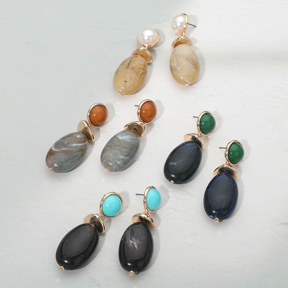 Marbled Oval Resin Pebble Drop Earrings Marbled Oval Resin Pebble Drop Earrings Marbled Oval Resin Pebble Drop Earrings