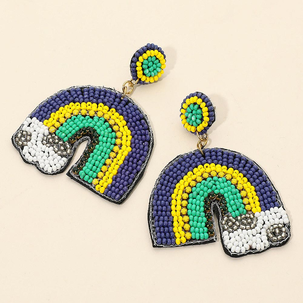 Details • Size : 2" X 2.5" • Post Back • Bold rainbow drop earrings with layered texture and dimensional detailing designed to make a statement. Lightweight for comfortable wear and perfect for adding playful charm to everyday outfits or standing out at parties, festivals, and special occasions. • Lead and Nickel Compliant • Made In India