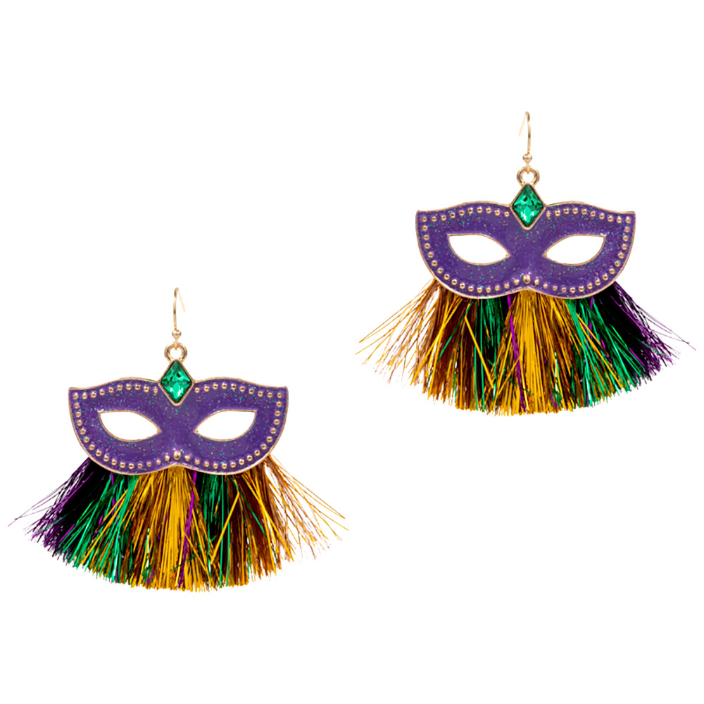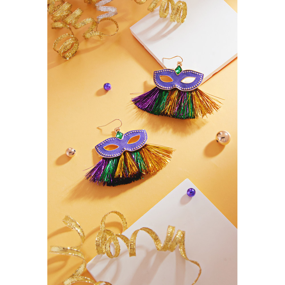Mardi Gras Mask Tassel Fringe Dangle Earrings