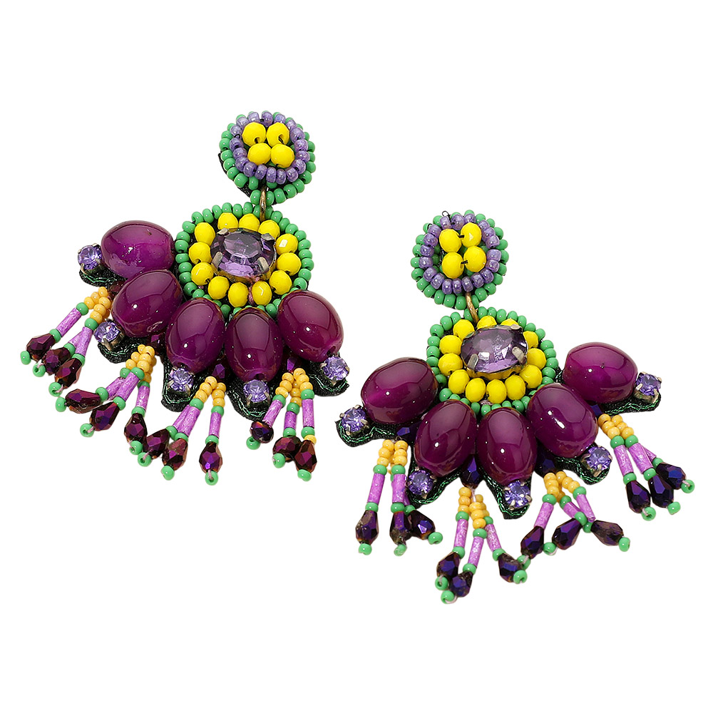 Details • Size : 1.75" X 2.5" • Post Back • Eye-catching beaded fringe statement earrings designed to bring bold texture and dynamic movement to any outfit. A striking accessory for festivals, nights out, or everyday style, offering standout flair while staying lightweight and easy to wear. • Lead and Nickel Compliant • Made In India