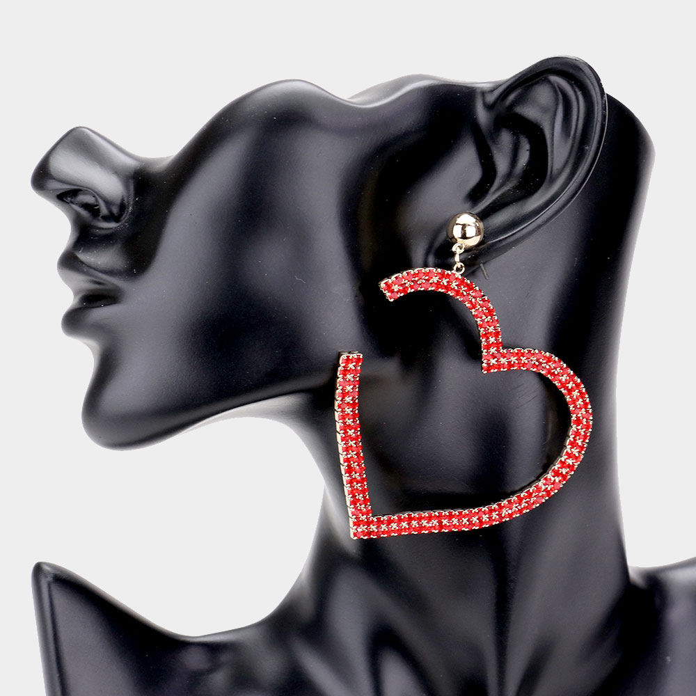 Bold Rhinestone Paved Heart Clip On Earrings