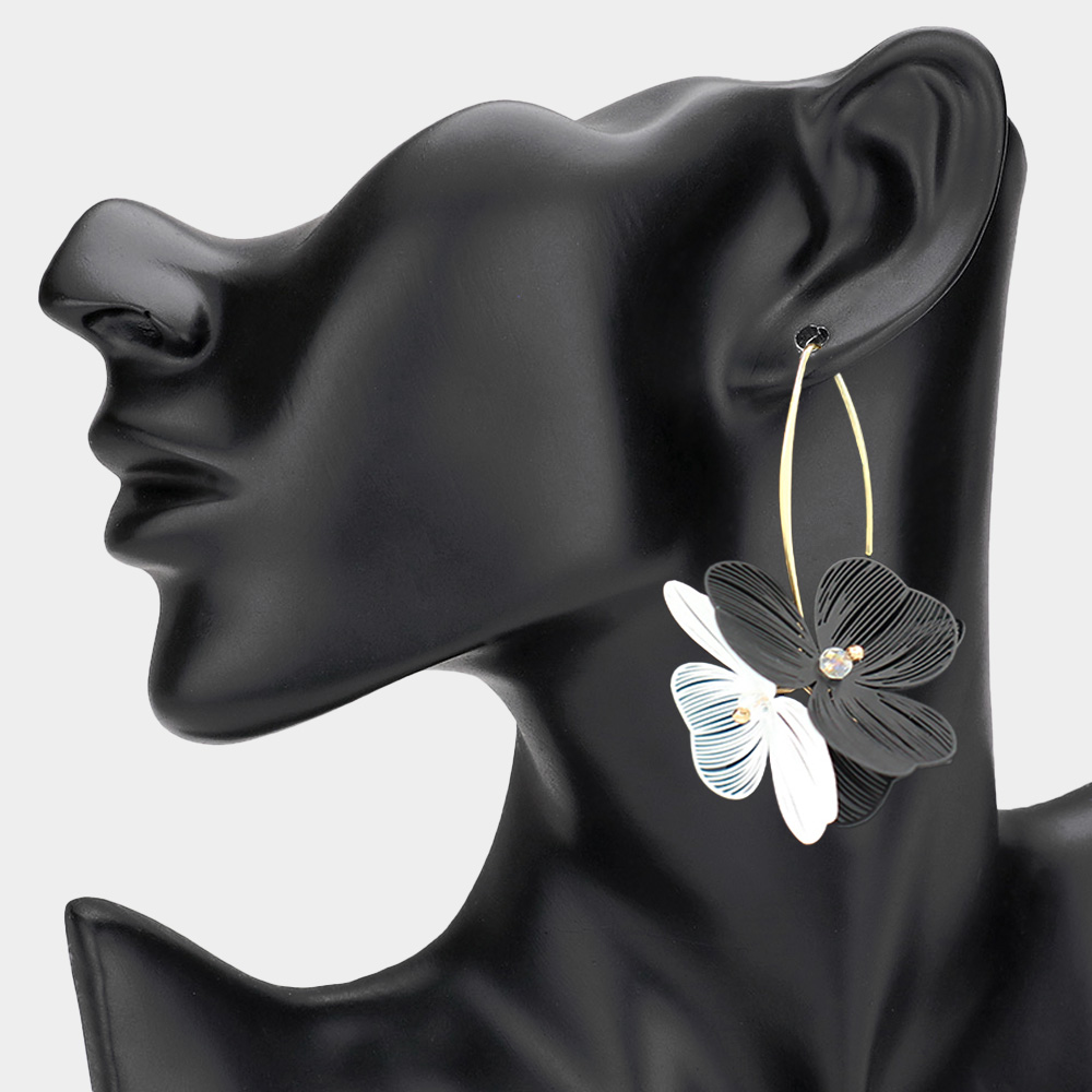 • Standout floral dangle earrings with layered petal accents and elegant curves. A striking accessory that adds artistic flair and modern sophistication to any outfit. Ideal for both casual and formal wear.