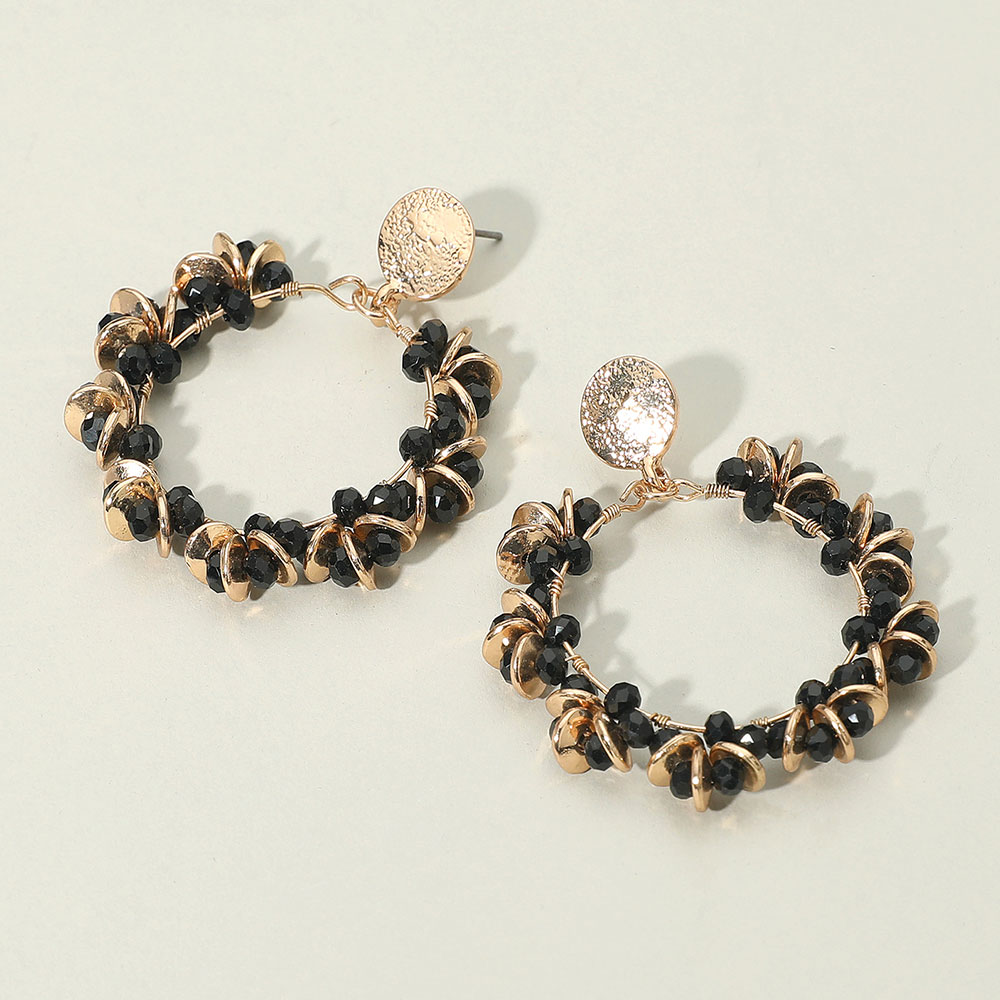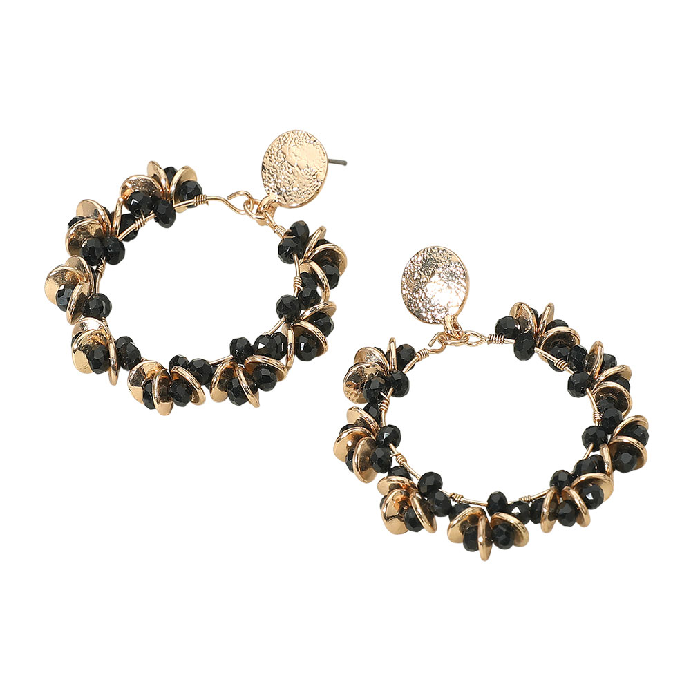 Metal Disc Faceted Beaded Open Ring Dangle Earrings Metal Disc Faceted Beaded Open Ring Dangle Earrings