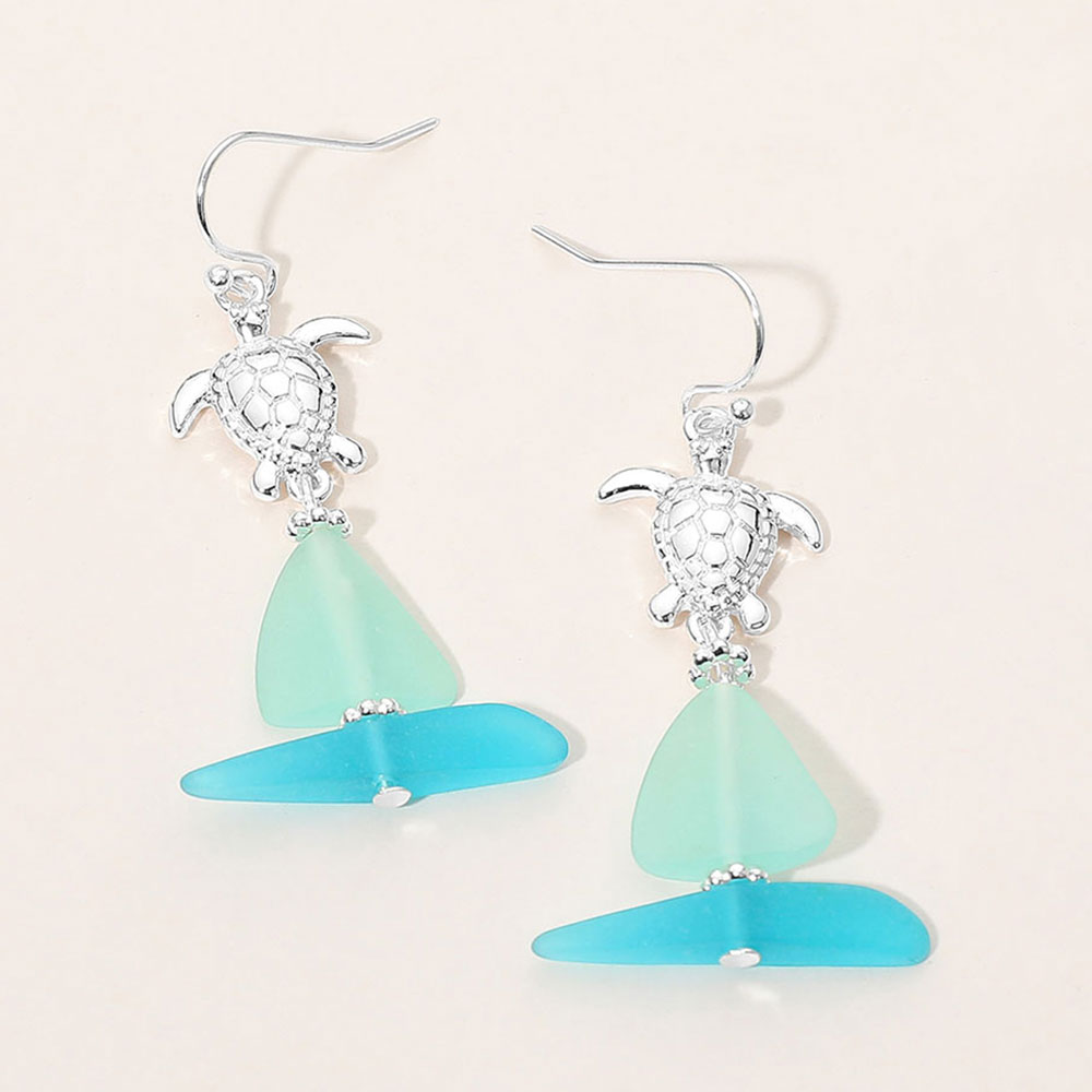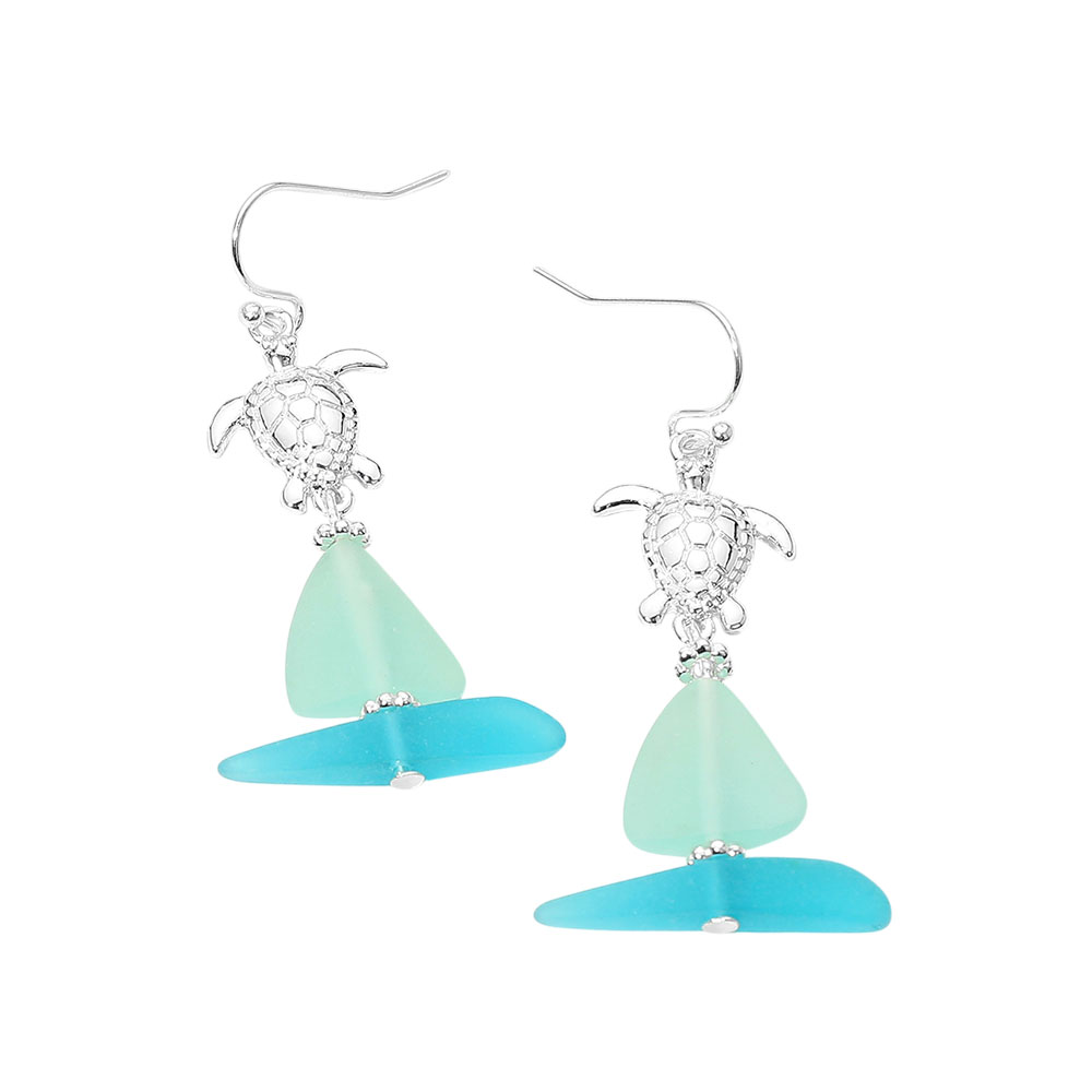 Metal Sea Turtle Sea Glass Sail Link Drop Dangle Earrings