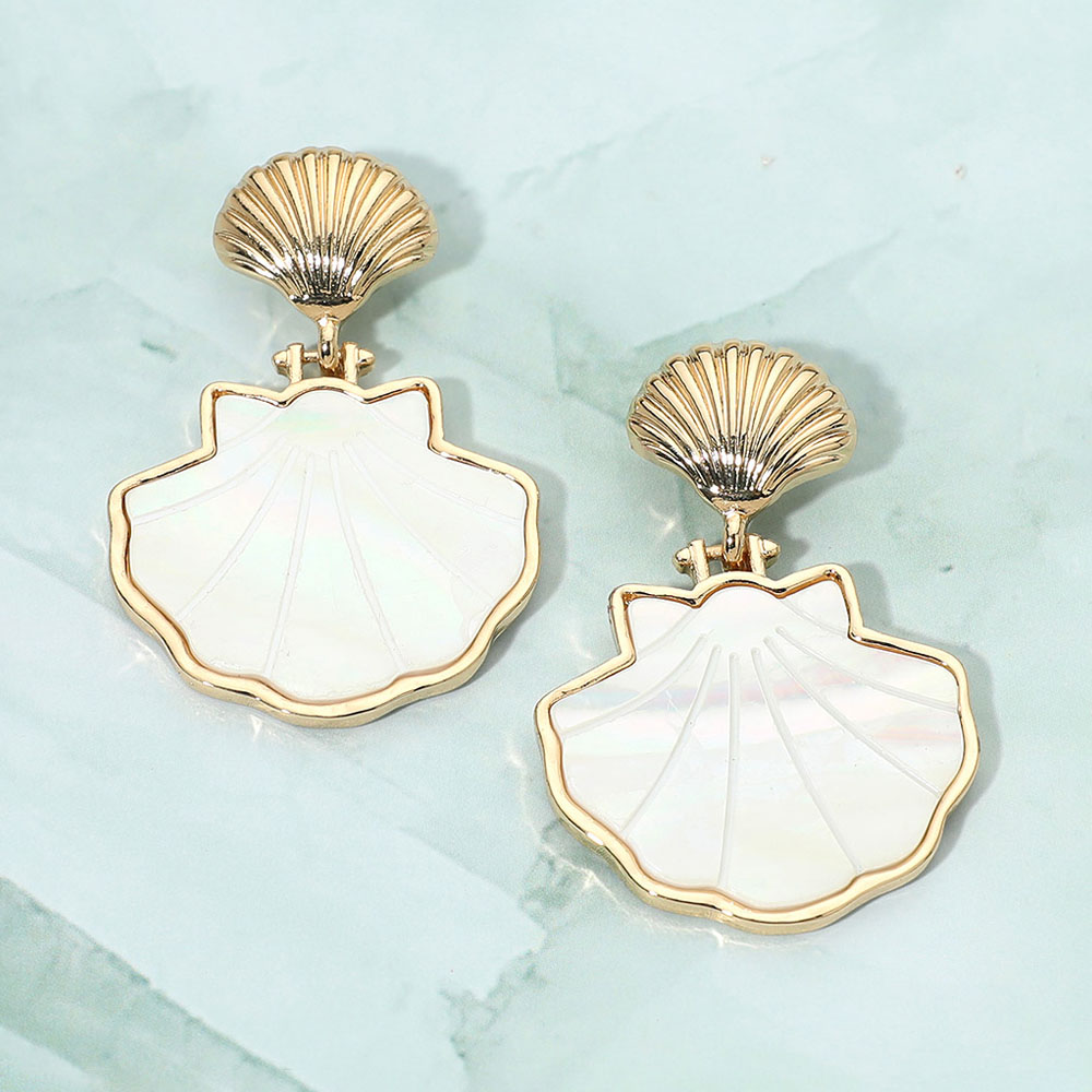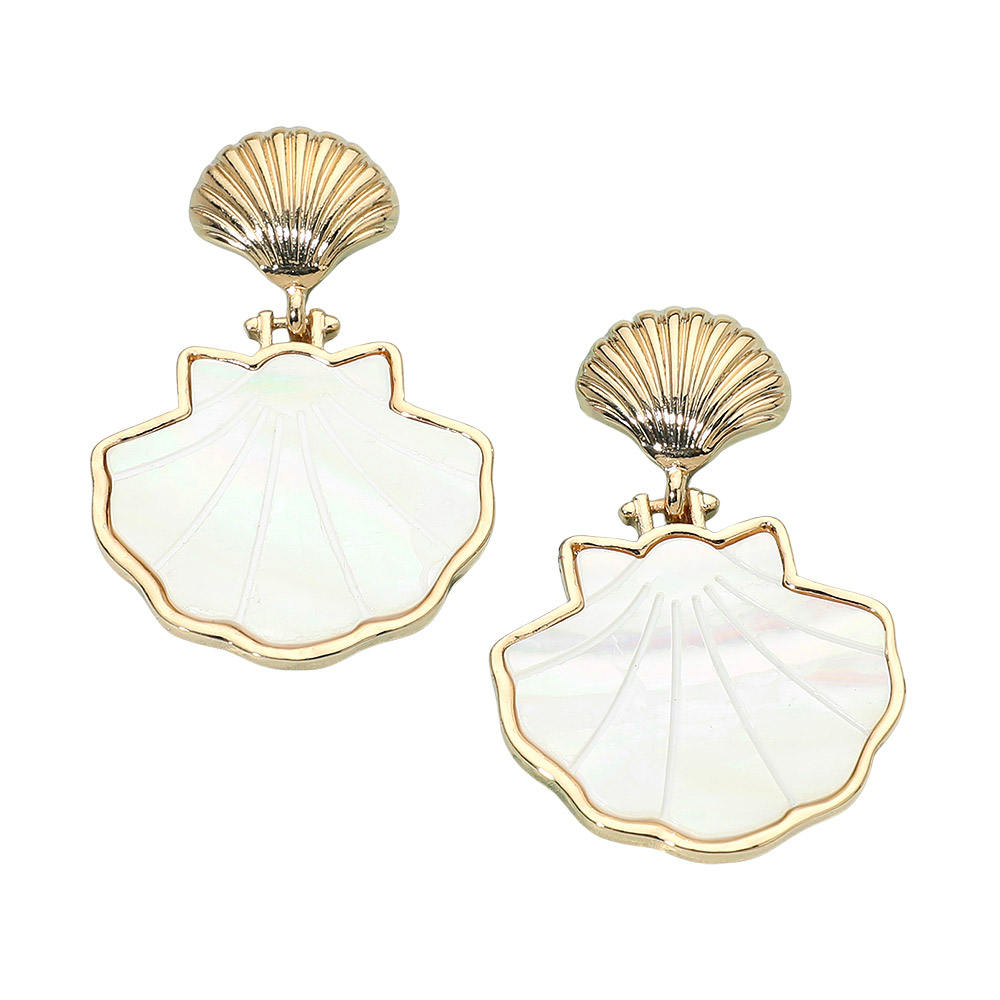 Details • Size : 1.2" X 1.6" • Post Back • tatement drop earrings featuring an elegant shell-inspired silhouette with dimensional detailing for a refined coastal look. Designed to elevate everyday outfits and resort-ready styles, this eye-catching accessory adds movement and charm. Ideal for boutiques seeking beach-themed, giftable earrings that appeal to seasonal, vacation, and trend-driven customers. • Lead and Nickel Compliant