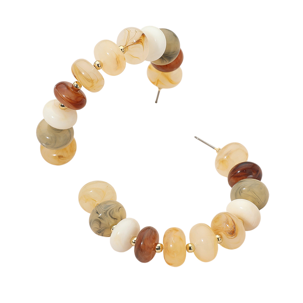 Details • Size : 1.8" X 2.25" X 0.4" • Post Back • Trendy beaded hoop earrings featuring multitone round beads with a marbled effect. Perfect for adding a playful yet stylish touch to casual or dressy looks, these earrings are lightweight, versatile, and ideal for making a chic fashion statement. • Lead and Nickel Compliant