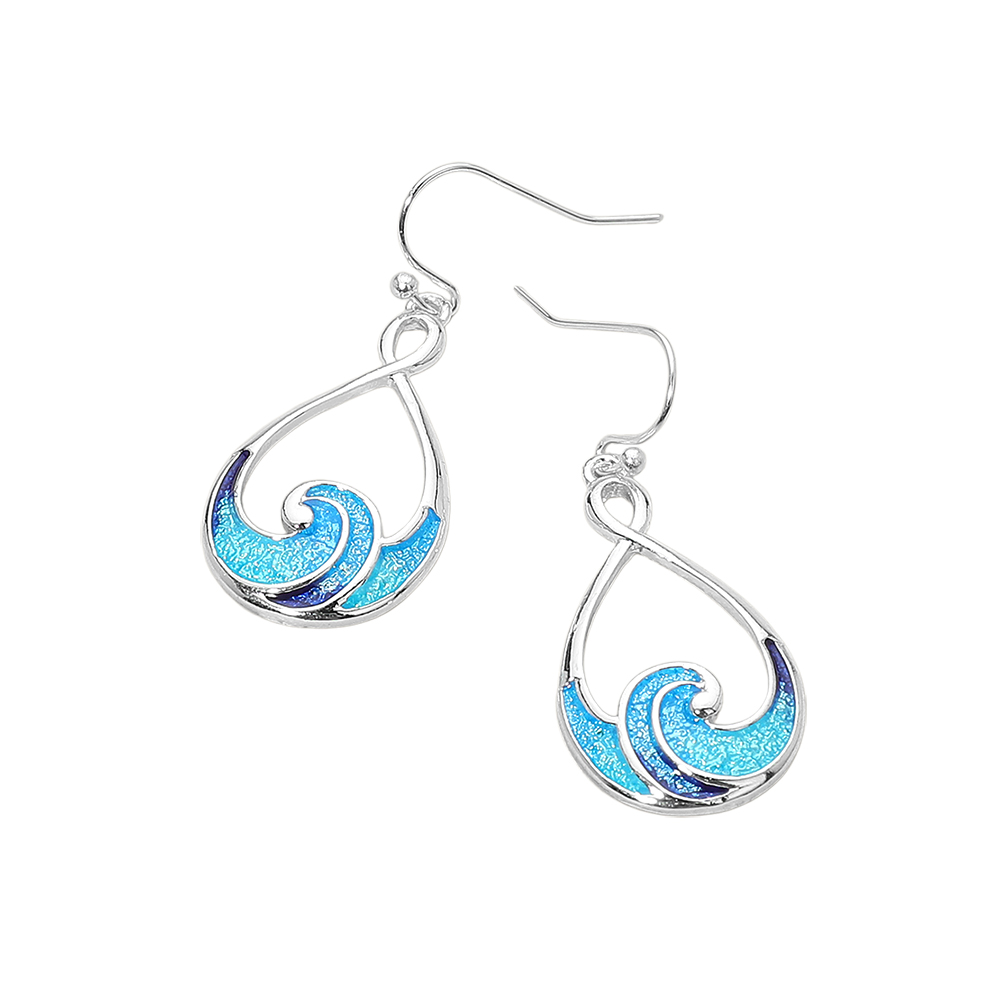 Details • Size : 0.7" X 1.6" • Fish Hook Back • Graceful ocean wave teardrop drop earrings featuring a flowing swirl design with open-frame movement. Ideal for everyday wear, beach vacations, coastal themes, and summer outfits, these earrings add a serene seaside feel, elegant motion, and a refined finishing touch to any accessory collection. • Lead and Nickel Compliant