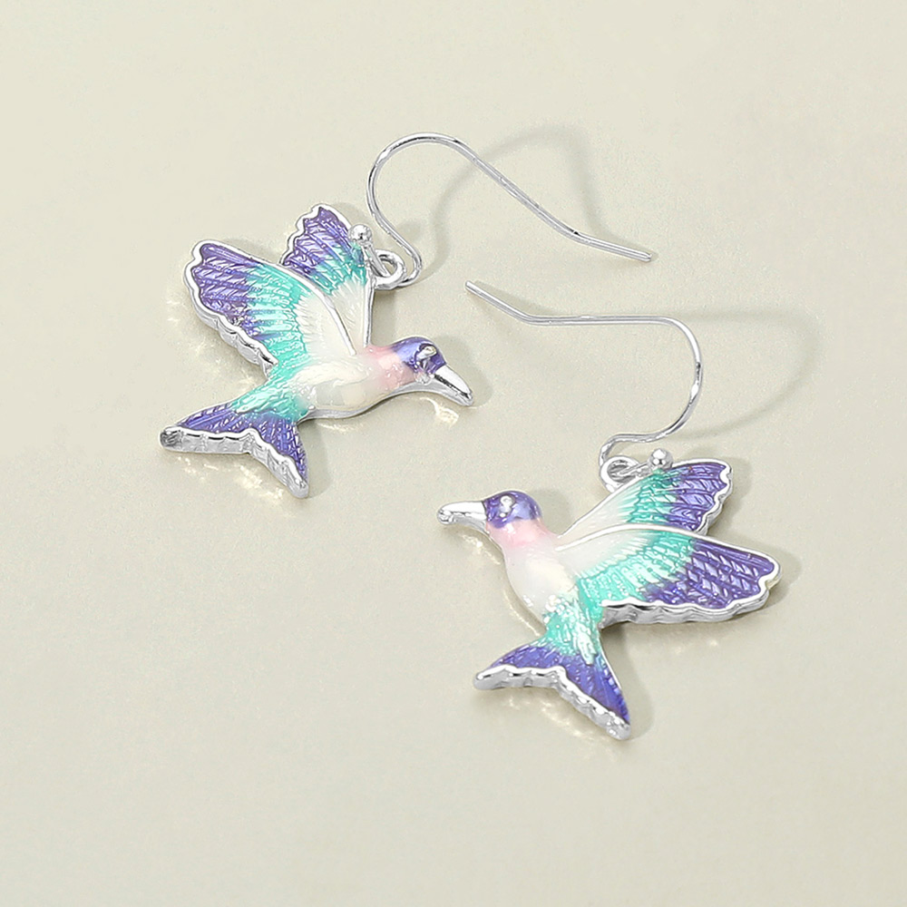 Details • Size : 0.9" X 1.3" • Fish Hook Back • Graceful hummingbird drop earrings crafted with fine wing detailing that captures the beauty of flight. Lightweight and stylish, these earrings add a touch of elegance and charm, making them perfect for everyday wear or special occasions. • Lead and Nickel Compliant