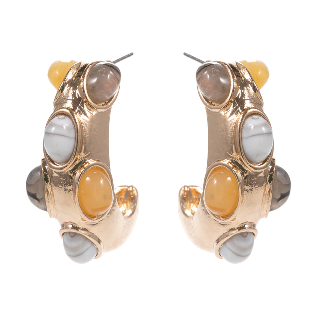 Oval Stone Embellished Chunky Hoop Earrings Oval Stone Embellished Chunky Hoop Earrings