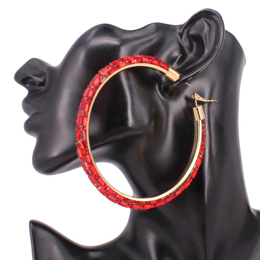 Oversized Baguette Rhinestone Embellished Hoop Earrings